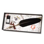 Brass Feather Quill Pen & Ink Set - a proven seller. Brass Feather Nib Pen Set paired with Italian Ink and three additional nibs Elegant printed gift-box with hard window cover for easy display.