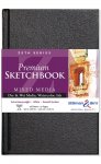 These hard-cover sketch books feature high performance, pH neutral, lignin- and chloride-free paper. The heavy-weight 270 gsm paper has a smooth white surface that is suitable for all dry media and ink. With both internal and surface sizing, it will accept light washes, wet media and watercolor as well. The covers are made with extra heavy-weight binders' board that is tough and resistant to warping. The hard-bound books contain 26 sheets and the wire-bound books contain 25 sheets Bound in the USA.