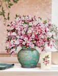 A celebration of Japan’s iconic Sakura, these soft pink petals represent renewal and the wondrous beauty of nature and springtime. Unlike in the wild, this elegant display will remain in bloom year round and rests in an ornate jade inspired paper vase.